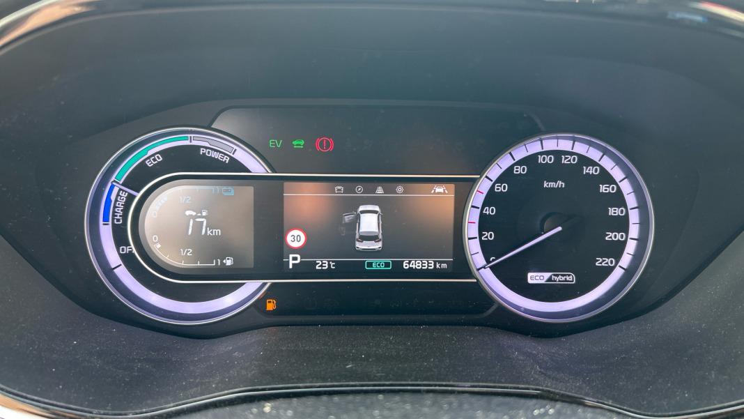 Cuatro frenos de disco siendo dos ventiladosApertura a distancia del maletero de tipo eléctricoLuces de lectura delanterasMotor de 1,6 litros ( 1.580 cc ) , cuatro cilindros en línea con cuatro válvulas por cilindro, 72,0 mm de diámetro, 97,0 mm de carrera, relación de compresión: 13,0 y distribución variable ; código del motor: G4LE 13,0Batería tipo: polímero de iones de litio de 240 voltios, 6,5 Ah y 1,6 kwh 4, 0 y 0Alimentación : gasolina - inyección directaTermómetro de temperatura exteriorPrestaciones: 164 kmh de velocidad máxima, 11,5 segs de aceleración 0-100 kmh y 120 kmh de velocidad máxima en modo eléctricoNeumáticos delanteros y traseros de 18 pulgadas de diametro, 225 mm de ancho, 45 % de perfil y índice de velocidad: W con índice de carga: 91 (datos del neumático oficiales de la marca)Sistema de ventilación con pantalla digital, filtro de pólen y filtro de carbón activo combustiónRetrovisores plegablesLavaparabrisas calefactableLlantas delanteras y traseras en aleación ligera de 18 pulgadas de diámetro y 7,5 pulgadas de ancho 45,7 y 19,0Sistema de servofreno de emergenciaIndicador de baja presion de los neumáticos con visualización de presión y sensor Montado en la llantaRed seguridad de cargaPotencia secundaria de 105 CV, 77 kW de potencia máxima, 147 Nm de par máximo, 5.700 rpm para la potencia máxima y 4.000 rpm para el par maximoFreno mano electrónicoSensor de adelantamiento activo sin intermitenteFiltro de partículasControl de arranque en pendienteBotón de arranque del vehículoRecuperación de la energía motorUn motor eléctrico de 43,5 CV y 32,0 kW con 170 Nm de par maximo motor síncrono de imán permanente de CASistema de dirección dinámicaInformacion Basica