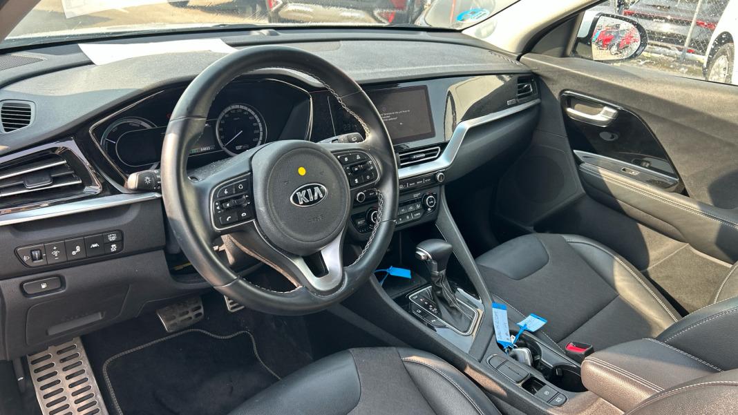 ABSTestigo de cinturones ( cinco )Airbag lateral de cortina delantero y traseroAirbag frontal del conductor, airbag frontal del acompañante desconectableAirbags laterales delanterosCinturón de seguridad delantero en asiento conductor, acompañante y ajustable en altura con pretensoresCinturón de seguridad trasero en lado conductor, cinturón de seguridad trasero en lado acompañante, cinturón de seguridad trasero en asiento central de 3 puntosControl de estabilidadDistribución electrónica de la frenadaResultado de pruebas de impacto Euro NCAP :, puntuación global: 4,00, protección adultos: 83,00, protección niños: 80,00, protección peatones: 57,00, puntuación ayudas a la seguridad: 59,00, Versión evaluada: Kia Niro GL 1.6GDI Hybrid 5dr SUV y Fecha del test: 31 ago 2016Airbag de rodilla para el conductorSistema de alarma de colisión: activa los cinturones de seguridad y las luces de freno con asistencia de frenado, sistema antiatropello peatonesciclistas, monitorización del conductor y frenado a baja velocidad de 10 Kmh como mínimo aviso visual acústico, funciona por encima de 130 kmh  78 mph, funciona por encima de 50 kmh  30 mph y funciona por debajo de 50 kmh  30 mphAlerta de cambio de carril: activa la direcciónAviso de tráfico trasero en cruceSistema de alerta sonora para el peatónSiete airbagsMultimedia Y Audio