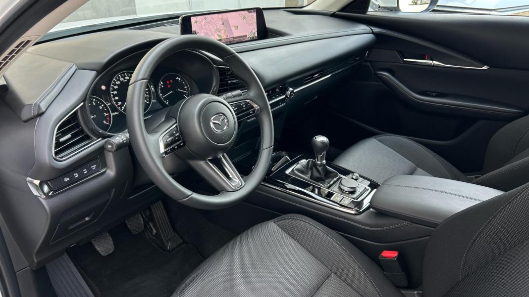 ABSTestigo de cinturones ( cinco )Airbag lateral de cortina delantero y traseroProtección antirroboAirbag frontal del conductor, airbag frontal del acompañante desconectableAirbags laterales delanterosCinturón de seguridad delantero en asiento conductor, acompañante y ajustable en altura con pretensoresCinturón de seguridad trasero en lado conductor, cinturón de seguridad trasero en lado acompañante, cinturón de seguridad trasero en asiento central de 3 puntosControl de estabilidadResultado de pruebas de impacto Euro NCAP :, puntuación global: 5,0, protección adultos: 99,0, protección niños: 86,0, protección peatones: 80,0, puntuación ayudas a la seguridad: 77,0, Versión evaluada: Mazda CX-30 2.0 petrol 5-door OD LHD y Fecha del test: 13 nov 2019Airbag de rodilla para el conductorSistema de alarma de colisión: activa las luces de freno con asistencia de frenado, sistema antiatropello peatonesciclistas, monitorización del conductor y frenado a baja velocidad de 4 Kmh como mínimo aviso visual acústico, funciona por encima de 130 kmh  78 mph, funciona por encima de 50 kmh  30 mph y funciona por debajo de 50 kmh  30 mphAlerta de cambio de carril: activa la direcciónPrev. colisiones en cruce tráfico tras. radar y cámaraSiete airbagsMultimedia Y Audio