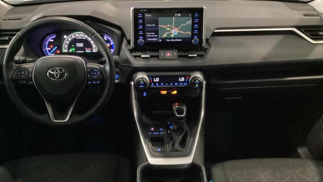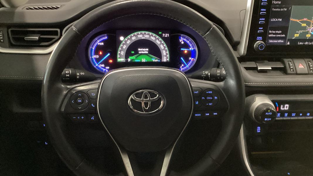 ABSTestigo de cinturones ( cinco )Airbag lateral de cortina delantero y traseroAirbag frontal del conductor inteligente, airbag frontal del acompañante desconectable y inteligenteAirbags laterales delanterosCinturón de seguridad delantero en asiento conductor, acompañante y ajustable en altura con pretensoresCinturón de seguridad trasero en lado conductor, cinturón de seguridad trasero en lado acompañante, cinturón de seguridad trasero en asiento central de 3 puntosControl de estabilidadDistribución electrónica de la frenadaResultado de pruebas de impacto Euro NCAP :, puntuación global: 5,00, protección adultos: 93,00, protección niños: 87,00, protección peatones: 85,00, puntuación ayudas a la seguridad: 77,00, Versión evaluada: Toyota RAV4 Hybrid AWD 5dr SUV LHD y Fecha del test: 22 may 2019Airbag de rodilla para el conductorSistema de alarma de colisión: activa las luces de freno con asistencia de frenado, sistema antiatropello peatonesciclistas, monitorización del conductor y frenado a baja velocidad de 10 Kmh como mínimo aviso visual acústicoAlerta de cambio de carril: activa la direcciónControl de estabilidad del remolqueSistema de alerta sonora para el peatónSiete airbagsMultimedia Y Audio