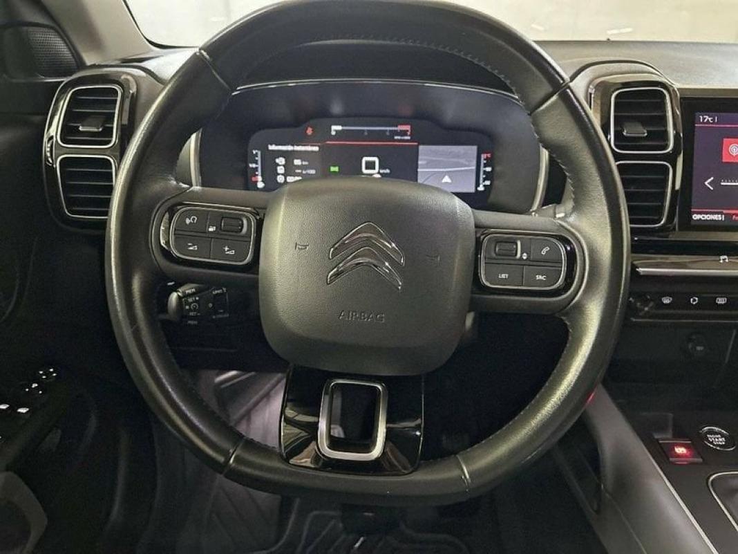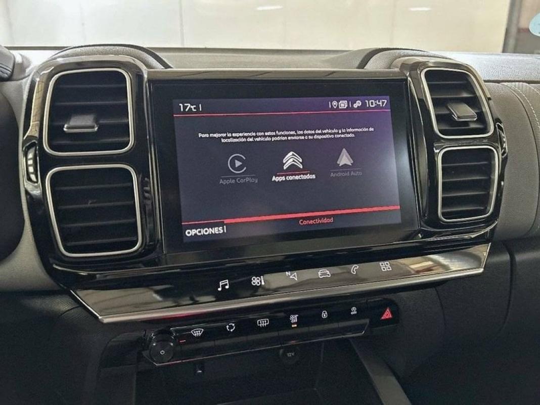 Citroën C5 Aircross La Experiencia Definitiva en SUV ¿Tienes dudas sobre la conducción de este coche? No pasa nada, ven y pruébalo antes de comprarlo. El Citroën C5 Aircross es un SUV notable que reúne confort, estilo, tecnología y practicidad en un solo paquete cohesivo. Su diseño innovador, junto con características avanzadas y opciones de rendimiento versátiles, lo convierten en una elección ideal para los conductores modernos que demandan más de sus vehículos. Ya sea para el desplazamiento diario, aventuras familiares o largos viajes por carretera, el Citroën C5 Aircross está listo para superar las expectativas y ofrecer una experiencia de conducción inigualable. EQUIPAMIENTOS: ABS Airbag frontal del conductor inteligente, airbag frontal del acompañante desconectable y inteligente Airbag lateral de cortina delantero y trasero Airbags laterales delanteros Aire acondicionado bizona de automático Alerón en el techo/parte superior del portón Alerta de cambio de carril: 180 y 112 Apoyabrazos central delantero Apoyabrazos trasero Asiento delantero del conductor individual, ajuste longitudinal manual, ajuste manual en altura y ajuste lumbar manual con ajuste manual del respaldo, asiento delantero del acompañante individual y ajuste longitudinal manual con ajuste manual del respaldo Asientos de tela (material principal) y de cuero sintético (material secundario) Asientos traseros de tres plazas de tipo individual de orientación delantera ajuste longitudinal manual con respaldo abatible simétrico y ajuste manual del respaldo Bandeja trasera rígida Bluetooth Botón de arranque del vehículo Cierre centralizado con apertura por tarjeta/llave inteligente Cinturón de seguridad delantero en asiento conductor, acompañante y ajustable en altura con pretensores Cinturón de seguridad trasero en lado conductor con pretensores, cinturón de seguridad trasero en lado acompañante con pretensores, cinturón de seguridad trasero en asiento central de 3 puntos Conexión para: USB delantero y 0 Control de Apps Control de arranque en pendiente Control de crucero Control de estabilidad Control electrónico de tracción Controles de climatización diferenciados digitales para conductor/acompañante Control remoto de audio en el volante Conversión texto a voz / voz a texto Cristal trasero oscurecido en el lateral trasero Cromado en las ventanas laterales Cuatro frenos de disco siendo dos ventilados Dirección asistida eléctrica con endurecimiento progresivo s/velocidad Dos reposacabezas en asientos delanteros ajustables en altura, tres reposacabezas en asientos traseros ajustables en altura Elevalunas eléctricos delanteros y traseros con dos de ellos de un solo toque Encendido automático luces emergencia Encendido diurno automático Equipo de audio con radio AM/FM, RDS y pantalla táctil pantalla a color Equipo reparación neumáticos Espejo de cortesía en conductor en acompañante Faros con lente de superficie compleja, bombilla halógena y luz larga con bombilla halógena Filtro de partículas Freno mano electrónico Indicador de baja presion de los neumáticos Integración móvil Apple CarPlay, Android Auto, MirrorLink y 0 Limitador de velocidad Limpiaparabrisas delantero Luces antiniebla delanteras Luces de freno, luces intermitentes laterales, Luces de día y Luces traseras con tecnología LED Luces laterales maniobras/de bordillo Luneta trasera fija con limpialuneta trasera intermitente Memoria interna/disco duro: Navegador con datos vía memoria interna/disco duro y pantalla a color de 8,00 " con información en 3D y con voz, control mediante pantalla táctil y información de tráfico 20,3 Ordenador de viaje con consumo medio Pantalla multifunción de 12,30 " Panel de instrumentos 1 y 31,2, pantalla multifunción táctil de 8,00 " Salpicadero central 1 y 20,3 Pintura metalizada Portaequipajes longitudinal en el techo en Cromados/Plateados Preparación Isofix Puerto de carga USB delantero Reconocimiento señales de tráfico Recuperación de la energía motor Reducción catalítica selectiva Regulación de los faros con ajuste de altura manual y sensor de oscuridad Retrovisores plegables Retrovisor exterior del conductor y acompañante pintado con ajuste eléctrico desempañable Retrovisor interior con oscurecimiento progresivo automático Seis airbags Seis altavoces Sensor de adelantamiento incluye evitar colisiones Sensores de aparcamiento delanteros con sensor, sensores de aparcamiento traseros con sensor y cámara Sistema activacion por voz Sistema de alarma de colisión: activa las luces de freno con asistencia de frenado y frenado a baja velocidad distancia programable, funciona por encima de 50 km/h / 30 mph y funciona por debajo de 50 km/h / 30 mph Sistema de asistencia de aparcamiento trasero con visualización de guía Sistema de servofreno de emergencia Sistema de ventilación con pantalla digital y filtro de pólen controles en pantalla táctil Start/Stop parada y arranque automático Sujeción de carga Tablero de instrumentos con pantalla TFT configurable Tarjeta / llave inteligente con entrada sin llave y arranque sin llave Telemática con 0,00 ( 99 meses incluidos) vía SIM en el vehículo y 0 Toma/s de 12v en los asientos delanteros Volante multi-función revestido de cuero ajustable en altura y en profundidad