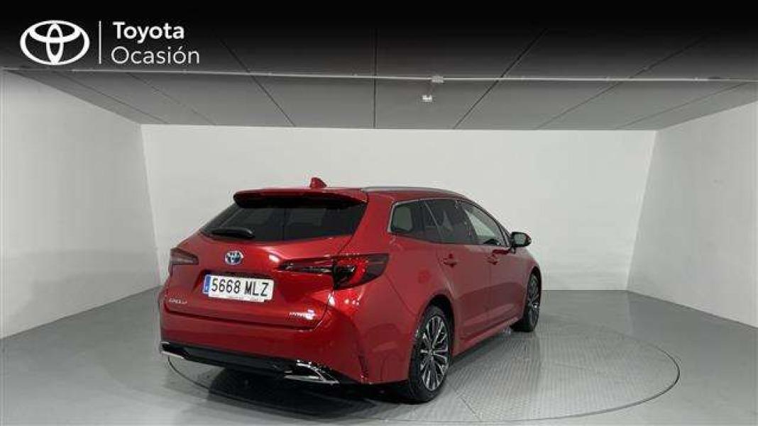 Extras Equipamiento destacado seleccionado por el usuario - Asiento conductor y acompañante regulable en altura- Bandeja cubre maletero reversible- Barras de techo- Cámara visión trasera- Cargador inalámbrico de smartphone- Climatizador bizona con salidas de aire traseras- Compatibilidad con Apple CarPlay y Android Auto (Apple CarPlay inalámbrica- Android Auto mediante cable)- Cristales traseros oscurecidos- Cuadro de instrumentos digital de 31.24cm (12.3")- Retrovisor interior electrocromático- Retrovisores exteriores plegables eléctricamente- Selección de modos de conducción (ECO- EV- SPORT)- Sensor de lluvia- Sensor de luz- Sistema de arranque sin llave (Push Start)- Sistema de Pre-Colisión (PCS) Con detección de automóviles- peatones- cilclistas y motocicletas precedentes + Asistente anticolisión en giros + Asistente anticolisión en intersecciones + Asistencia de emergencia a la dirección (ESA) + Contol de aceleració- 1 Toma corriente de 12V en el reprosabrazos delantero y 1 Toma de 12V en el maletero- 2 anclajes Isofix 3 puntos- plazas exteriores traseras- ABS + EBD + BA- Actualizaciones remotas del sistema con correciones y mejoras (OTA)- Airbag de cortina y laterales en todas las filas de asientos- Airbag de rodilla para conductor- Airbag frontal conductor y acompañante- Aire acondicionado- Asiento del conductor con ajuste lumbar eléctrico- Asientos 2ª fila abatibles con función un toque One Touch-Easy flat- Asientos delanteros calefactables- Asistente al arranque en pendientes (HAC)- Asistente de mantenimiento de carril (LTA)- Aviso de cambio involuntario de carril con recuperación de trayectoria (LDA)- Bloqueo infantil puertas traseras- Bluetooth con audiostreaming- Bolsillo en la parte trasera de asiento del pasajero- Cierre centralizado con mando a distancia- Conexión Apple CarPlay inalámbrico (Android Auto mediante cable)- Control de crucero adaptativo inteligente (i-ACC) con moderación de velocidad en curvas.- Control de Tracción TCS- Control dinámico de estabilidad- tracción y dirección (VSC+)- Control inteligente de luces de carretera (AHB)- Desconexión airbag pasajero- Dirección asistida eléctrica EPS- Elevalunas eléctricos secuenciales delanteros y traseros- Equipo de audio con 6 altavoces- ESP- Faros antiniebla LED- Faros delanteros Bi-LED- Faros delanteros con función "Follow me home"- Guarnecido del pomo de cambio en cuero negro- Iluminación ambiental interior- Indicador de presión de neumáticos TPWS- Ionizador de particulas para el habitáculo nanoeTM- Kit de reparación de pinchazos- Levas de cambio en el volante- Línea cromada en marco superior de cristales laterales- Llantas de aleación de 17´´- Llave digital inteligente (Smart Digital Key)- Luces de circulación diurnas con guia de luz LED- Marco superior cromado en cristales laterales- Neumáticos (225/45 R17)- Ópticas traseras con tecnología LED- Palanca cambios de cuero- Parasoles con espejo y luz de cortesía para conductor y acompañante- Parrilla frontal con embellecedores cromados- Pasos de puerta "Hybrid"- Pintura metalizada- Pintura metalizada Gris Ágata- Pintura Perlada- Pintura sólida Blanco Classic- Portabebidas delanteros y traseros- Radio AM/FM/DAB- Reconocimiento de señales de tráfico (RSA)- Reposabrazos central delantero deslizable en simil cuero- Reposabrazos central trasero abatible- Retrovisores exteriores calefactables ajustables y plegables eléctricamente- Sensores parking delanteros y traseros con frenado automático- Servicios conectados (prestaciones incluidas sin coste adicional durante 10 años). Hybrid coaching- encontrar mi vehículo- estadísticas semanales- mensuales y anuales (tiempo- distancia y velocidad)- nivel de combustible- información de indicadores de adv- Sistema de aviso acústico AVAS- Sistema de entrada sin llave (Smart Entry)- Sistema de llamada de emergencia (e-call)- Sistema de parada en caso de emergencia (EDSS)- Sistema proactivo de asistencia a la conducción (PDA) Anticipación de obstáculos + Assistencia de deceleración- Suspensión delantera tipo Macpherson- Suspensión trasera multibrazo independiente- Tapicería de tela y cuero sintético- Toma de 12V en el maletero- Toma de corriente de 12V en el reposabrazos delantero- Toma USB tipo C en consola central- Toma USB tipo C en el reposabrazos delantero- Toyota Smart Connect con pantalla de 26.6 cm (10.5"). Navegación online sin necesidad del smartphone- eventos en la carretera y tráfico en tiempo real- asistente virtual con lenguaje natural y contextual- informaición de parkings públicos- actualización i- Volante multifuncióm en cuero con mandos de audio- Volante multifunción en cuero con levas- Volante regulable altura y profundidad