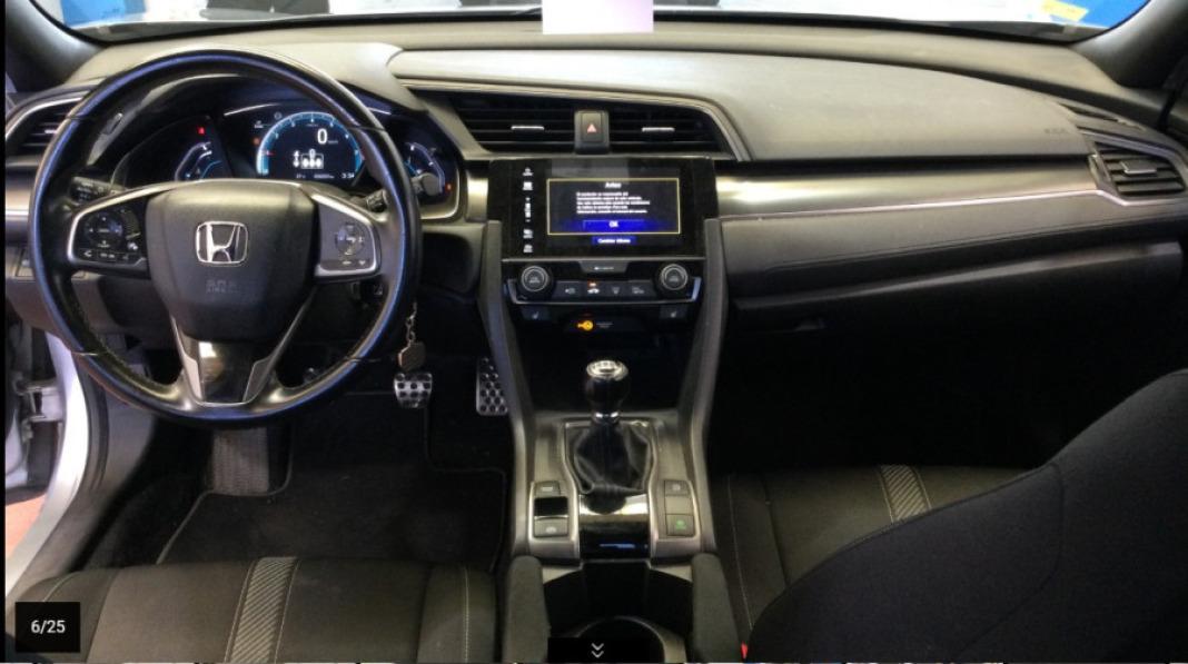 El Honda Civic 1.0 i-VTEC Turbo Comfort 129 CV combina eficiencia, rendimiento y un diseño moderno en un compacto de referencia. Su motor 1.0 i-VTEC Turbo de 129 CV ofrece una conducción ágil y equilibrada, con una respuesta rápida y un consumo contenido, ideal tanto para ciudad como para carretera. El acabado Comfort aporta un interior funcional y confortable, con asientos ergonómicos, materiales de calidad y un diseño pensado para el confort de todos los ocupantes. El Honda Civic 1.0 Turbo Comfort 129 CV se posiciona como una opción ideal para quienes buscan un compacto fiable, eficiente y versátil, que combine estilo, tecnología y dinamismo en cada trayecto. Crestanevada empresa especializada en compra y venta online, con puntos de venta en Granada, Sevilla, Girona, Murcia, Madrid, Antequera, Almería, Barcelona, Málaga, Alicante, Úbeda, Elche, Motril, Vélez Málaga, Huesca, Ávila, Jerez, Córdoba y Valencia. 12 MESES DE GARANTIA TOTAL Y 2 MESES DE PRUEBA o 1.000kms, ¡Podrá cambiar el vehículo por otro sin pérdida de valor!. Por poco precio puede contratar la ampliación de garantía, hasta 36 meses, con vehículo de cortesía incluido. Ofrecemos la MEJOR OFERTA DE FINANCIACIÓN DEL MERCADO. Garantizamos MÁXIMA TASACIÓN de su vehículo, asegurando importe mínimo de 500€. Vehículos totalmente REVISADOS de chapa, pintura y mecánica. Disponemos de más de 3.000 coches en stock, además, realizamos entregas a TODA España en una de nuestras instalaciones. HORARIO DE ATENCIÓN TELEFÓNICA Lunes a Viernes: 9:30h a 14:00h y de 16:00h a 20:00h Sábado: 10:00h a 14:00h ¡Somos el único concesionario a nivel nacional con un 4,8 de reseñas! Contacta con nosotros y descubre la experiencia de la felicidad de serie. Este anuncio no es vinculante, puede contener errores, se muestra a título informativo y no contractual. Consulte condiciones