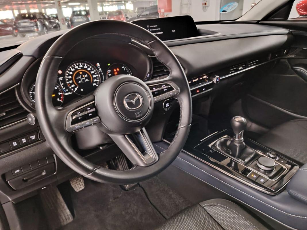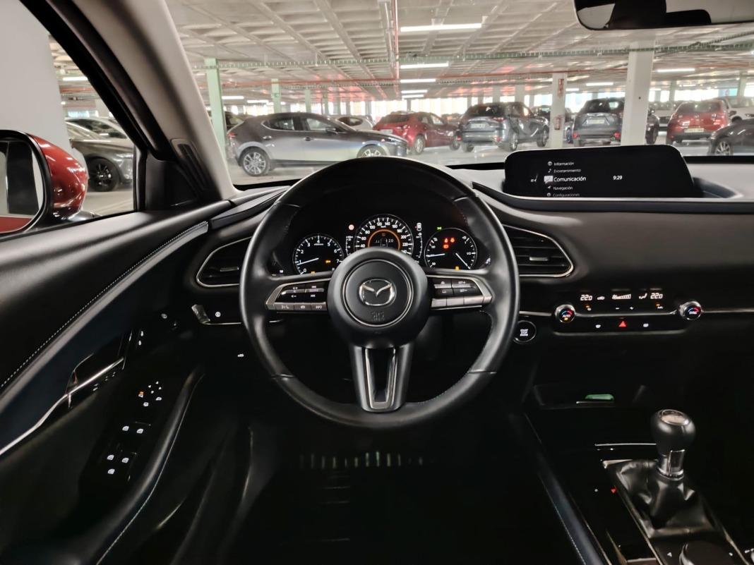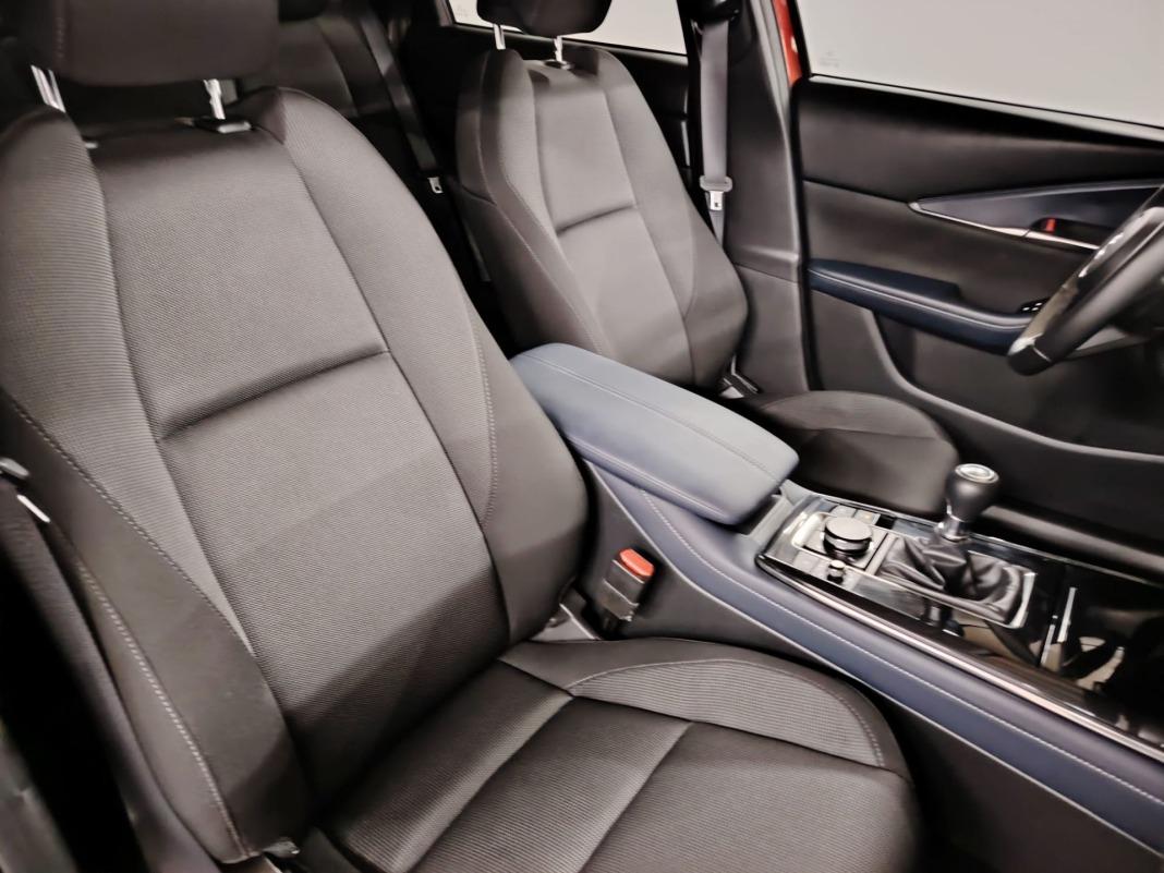 ABSAirbag de rodilla para el conductorAirbag frontal del conductor, airbag frontal del acompañante desconectableAirbag lateral de cortina delantero y traseroAirbags laterales delanterosAlerta de cambio de carril: activa la direcciónCinturón de seguridad delantero en asiento conductor, acompañante y ajustable en altura con pretensoresCinturón de seguridad trasero en lado conductor, cinturón de seguridad trasero en lado acompañante, cinturón de seguridad trasero en asiento central de 3 puntosControl de arranque en pendienteCuatro frenos de disco siendo dos ventiladosDistribución electrónica de la frenadaDos reposacabezas en asientos delanteros ajustables en altura, tres reposacabezas en asientos traseros ajustables en alturaEncendido automático luces emergenciaFreno mano electrónicoPreparación IsofixRecuperación de la energía motorResultado de pruebas de impacto Euro NCAP :, puntuación global: 5,00, protección adultos: 99,00, protección niños: 86,00, protección peatones: 80,00, puntuación ayudas a la seguridad: 77,00, Versión evaluada: Mazda CX-30 2.0 petrol 5-door OD LHD y Fecha del test: 13 nov 2019Sistema de alarma de colisión: activa las luces de freno con asistencia de frenado, sistema antiatropello peatones/ciclistas, monitorización del conductor y frenado a baja velocidad de 4 Km/h como mínimo aviso visual/ acústico, funciona por encima de 130 km/h / 78 mph, funciona por encima de 50 km/h / 30 mph y funciona por debajo de 50 km/h / 30 mphSistema de servofreno de emergencia